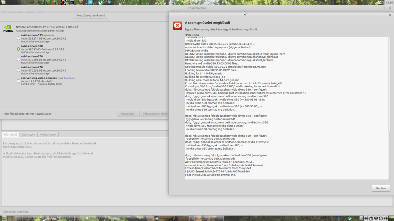 Nvidia driver. Én az ajánlott 535-el raktam fel maja a frissítéskezelő írta hogy frissíti az 580-ra, de aztán már beállítani magát nemtudja. Hogy tudnám doktorálni? Régebbi vissza aztán jólesz másnem. -