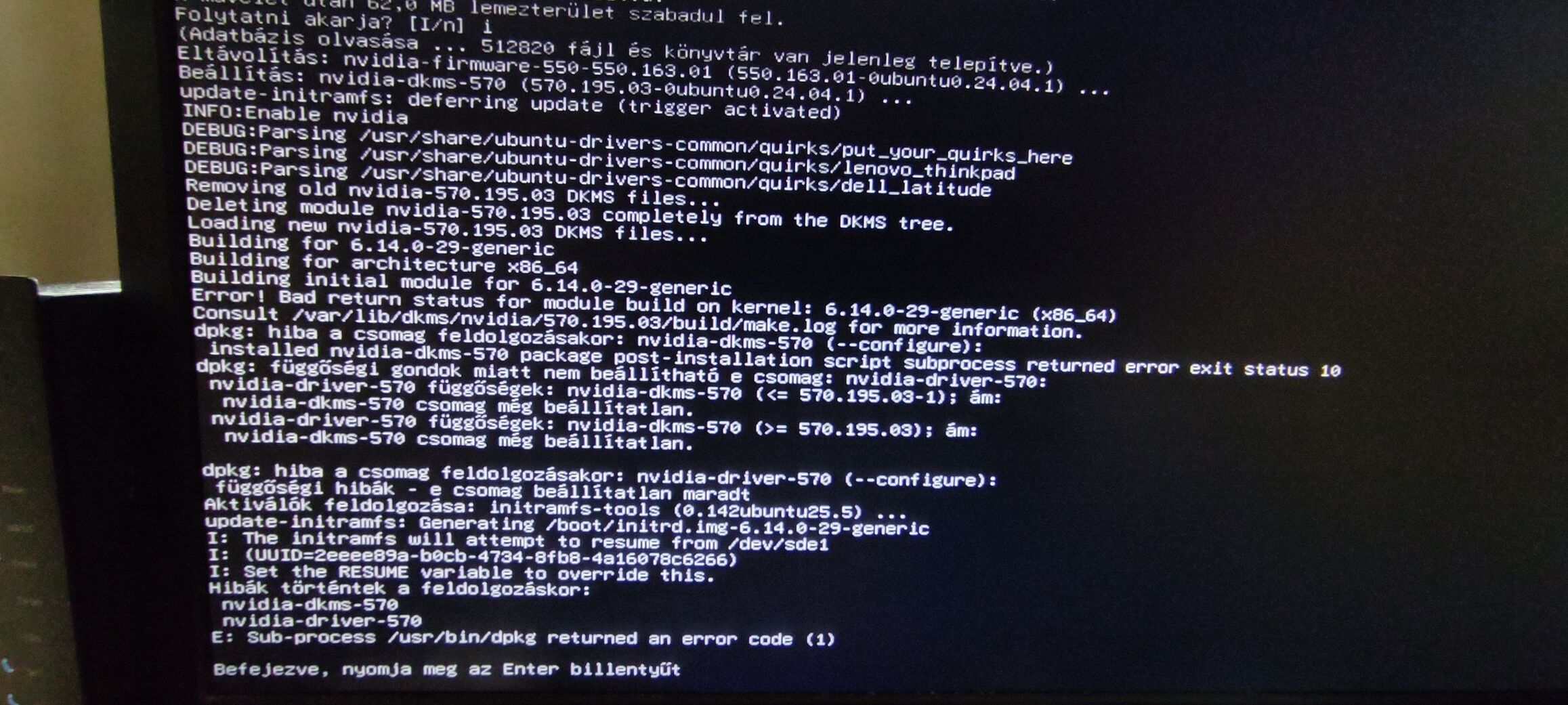 sudo apt install nvidia-driver-580 (remélem ez is fent van ott, nem csak az 570-es, bár szerintem nagy jelentősége nincsen)Szerk.: lassú voltam, de a lényeg kábé ugyanaz.