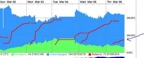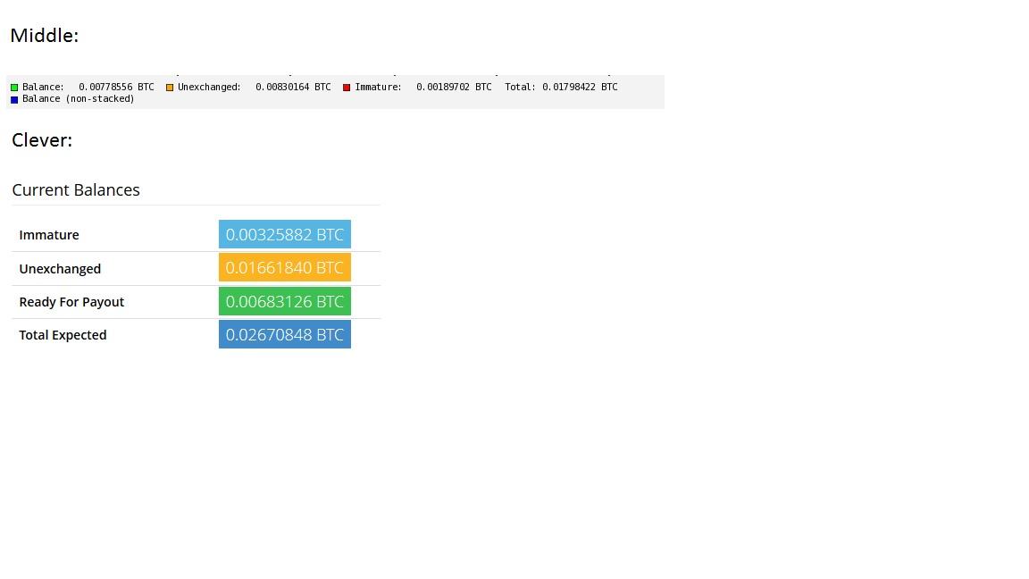 Ez a mai stat. Egy rakás xart sem ér. A middle ma a legalját nyújtja, sehol sincs a statban szereplő adatokhoz képest. Nem vagyok benne biztos, hogy meglesz ma a komplett poolnak a 100 BTC.