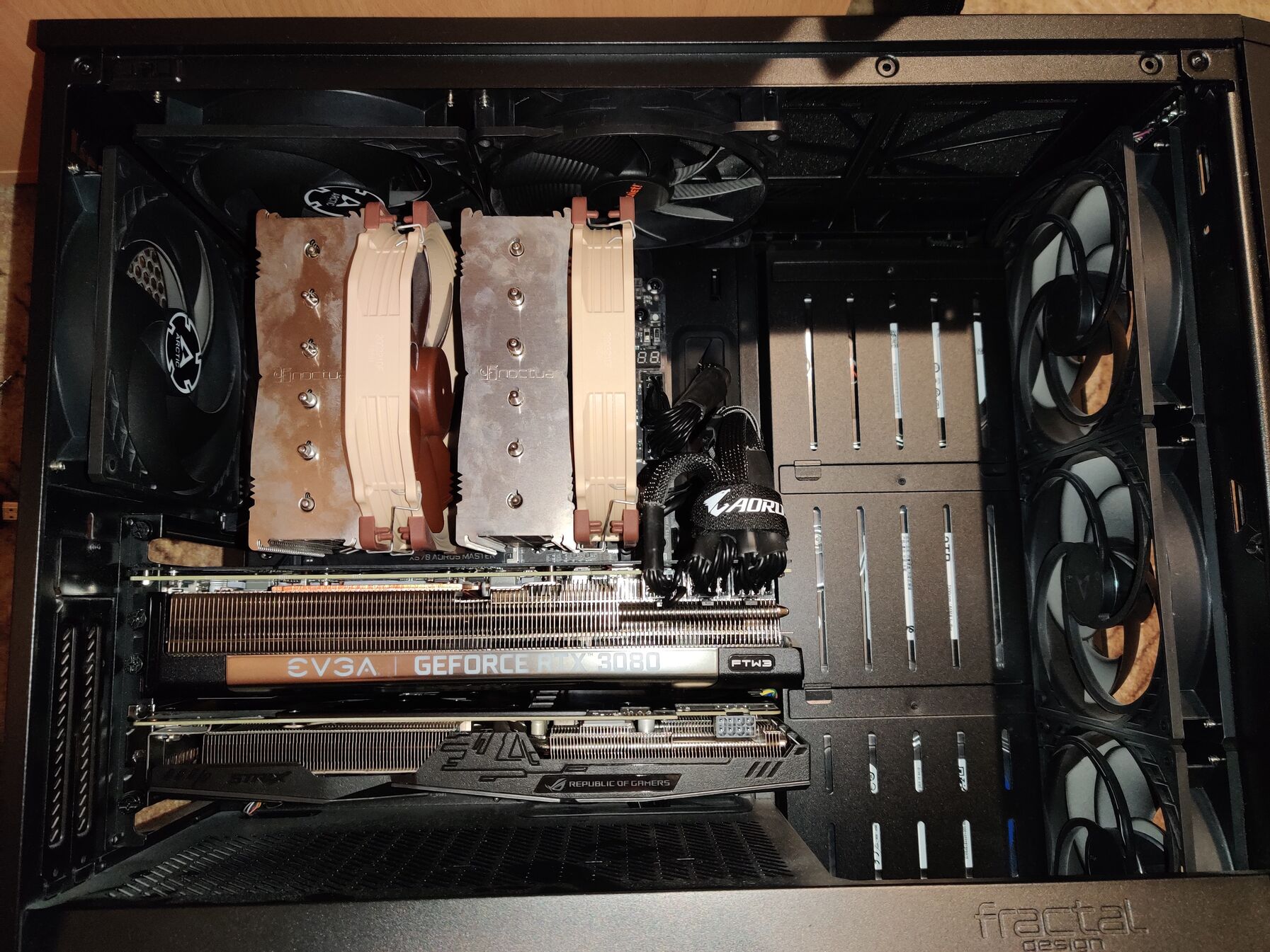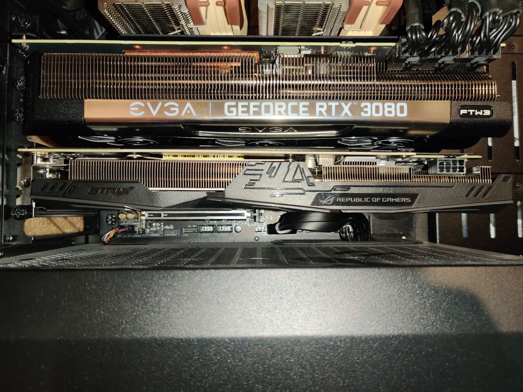 Na én most csináltam meg ugyan ezt a felállást. Nálam se fér el máshogy csak ha felül van a 3080 alatta a 1060.