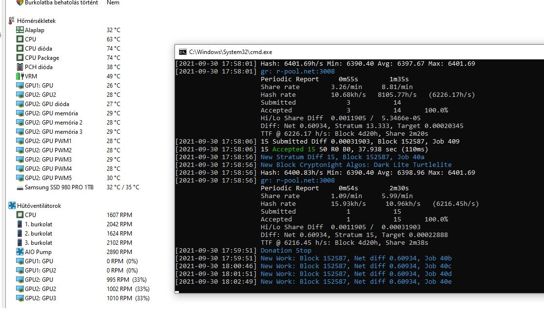 5600X-el nekem a miner alapján 1800-al tolja, poolon ~1700 körül van. óránként van kiutalás a walletba. Nekem fixen 4.65Ghz-en megy most, tudom hogy megy több is de erről tudom, hogy szinte atomstabil