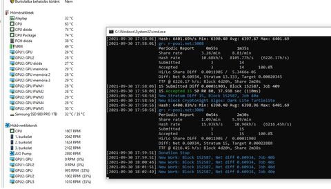 (ha épp csúcson lenne az árfolyam, de nekem gamer-gépben van a proci, ill. fut rajta 5 virtuális gép is, úgyh jóideje nem is használom cpu-bányászatra, mert kihasználom másra az erejét)Ugyanakkor én úgy tudom elég szépen mennek pl. a 3900X-ek (13,5ezer h/s azt hiszem és 120-140ezer Ft-okért voltak pár hónapja hardveraprón, de nekem valós tapasztalatom nincsen!), azok nem is drágák, én biztosan azzal építenék dedikált cpu+gpu-bányász riget, és mivel alulfeszelve használod a procit, nem kell hozzá nagyon durva alaplap sem.