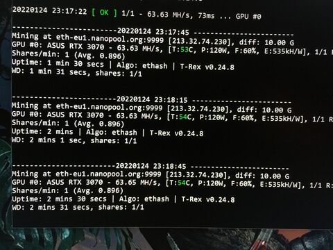 Ezek ilyen anomáliák, nálam 17 és 19 nap között lehal az egyik GPU, restartol a miner és megy tovább. Viszont utána ez egyre gyakrabban megesik és újra kell indítanom a bányát.