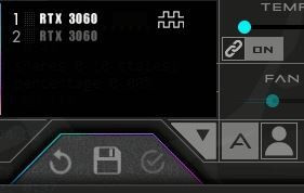 Azt mar kikapcsoltam. Az egesz egy bughalmaz. Bekapcsolom az automatikus ventiszabalyzast Afterburnerben. Az ikon (A-betu) bold.