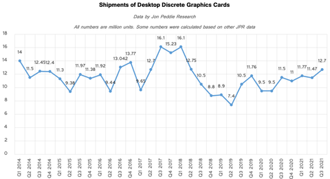 2021: 35,6M db (csak 3/4 ev)A 2014-16 kozti idoszakban teljesen kriptomentesen tobb kartyat adtak el, mint az elmult harom evben barmikor. Kozben volt egy oriasi felfutas 2017 vegen-2018 elejen, aztan egy brutalis csokkenes.