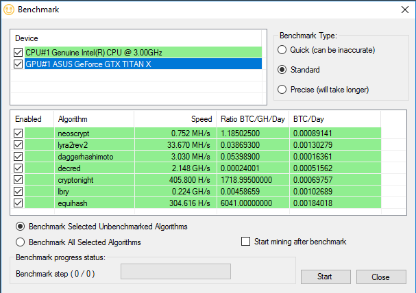 Csináltam egy kis listát, hogy a NiceHash Miner szerint mit éri meg jobban bányászni. Bár csak egy NVIDIA kártyával néztem, de ez is több a semminél. Majd megnézem egy 480-nal is. Annyival egészítettem ki, hogy én belekalkuláltam a GPU kihasználtságát is. A benchmark ezt nem teszi meg. Igazából az utolsó oszlop adatai a fontosak. Persze ezek az értékek változhatnak, ha például kiadnak egy hatékonyabb miner-t, vagy emelkedik egy coin árfolyama.