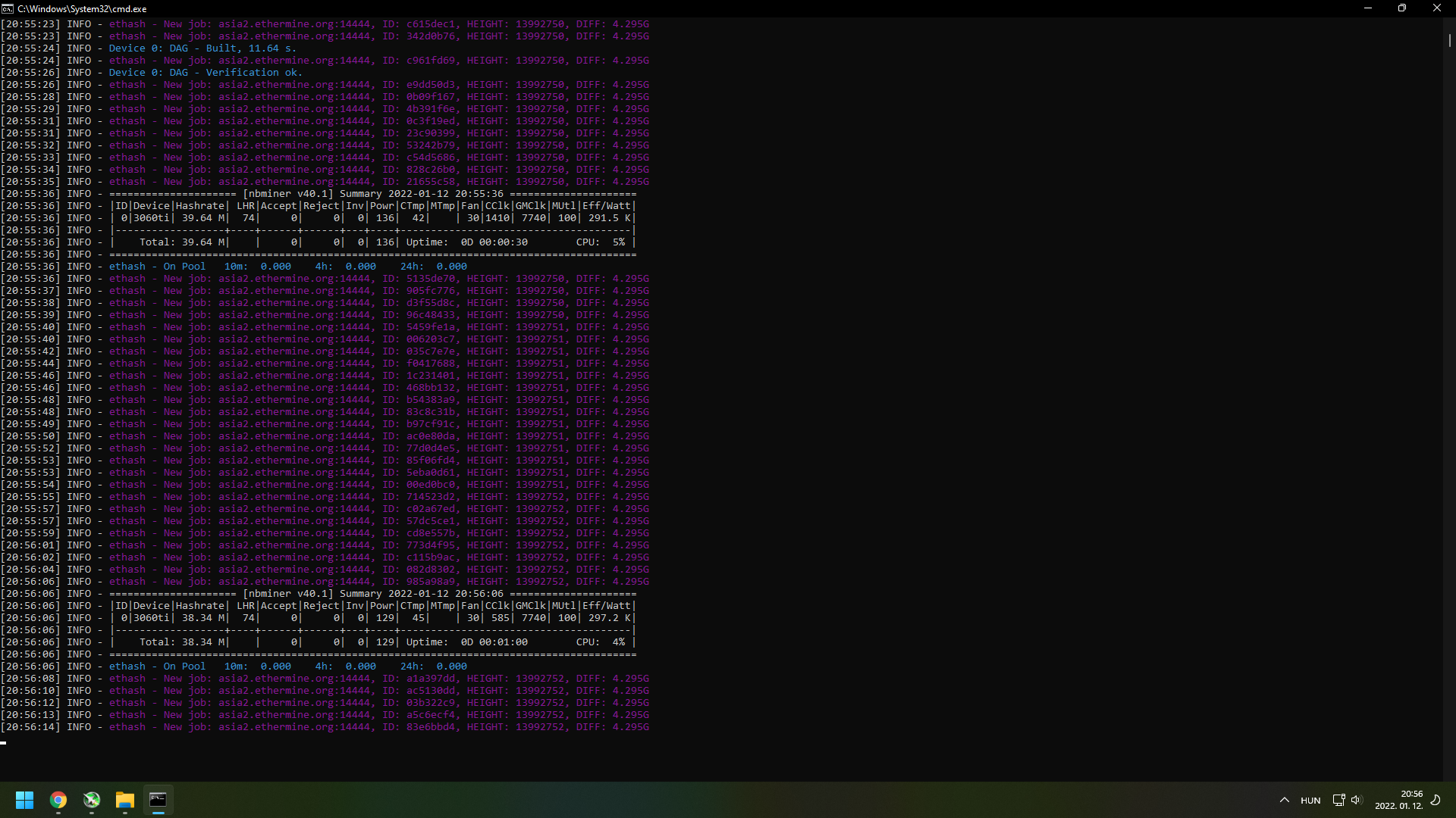 Aki a legújabb lolminert használja lhr kártyával, nektek is 10percenként lhr lockol, aztán unexpected low hashrate, lhr unboxing, lhr calibraton stb szövegeket dobál? ... hashrate ilyenkor 10-20-ra is lecsökken és percek kellenek hogy újra elérje a 70 feletti lhr értéket..