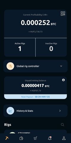Amugy erre legjobb megoldas a nicehash...4 orankent walletba rakja a lovet es bitcoinra valtja,nekem eddig a az 59-60 ft/h az elmult 3 napban felment 65 huf/h-ra.