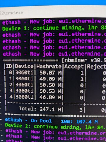 Közben nézem én is, hogy a Poolnál mi a helyzet, false számokat ír az nbminer, nem nézi azt, hogy LHR lock-ol a kártya, így kevesebb a hashrate, mint amit kiír, elhamarkodottan örültem.