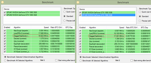NiceHash Benchmark - GTX 1060 3GB (+90W fogyasztás üresjárathoz képest)