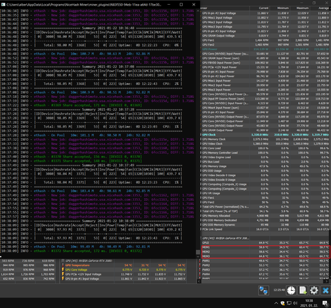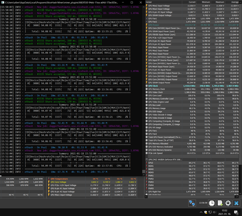 +800MEM az effektív mennyi? De akkor az sincs túl tolva, meg az a kártya az egyik legjobb hűtésű amúgy is.Nálam a +1100MEM hwinfo szerint 2588MHz, miner 10351 MHz-et ír, de ennek a duplája az effektív órajel ha jól tudom azaz 20700 MHz ~ 20.7 GHz.