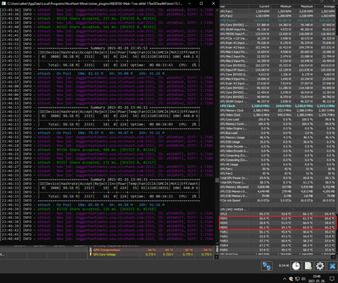 De így se rossz. Sajna win defender bezárta 15.5 órája tartó bánya munkámat így kezdhettem elölről, de így néz most ki:Viszont azt vettem észre sokkal kevesebb a share önmagában mint korábban volt, kb felére csökkent valamiért (nicehash).