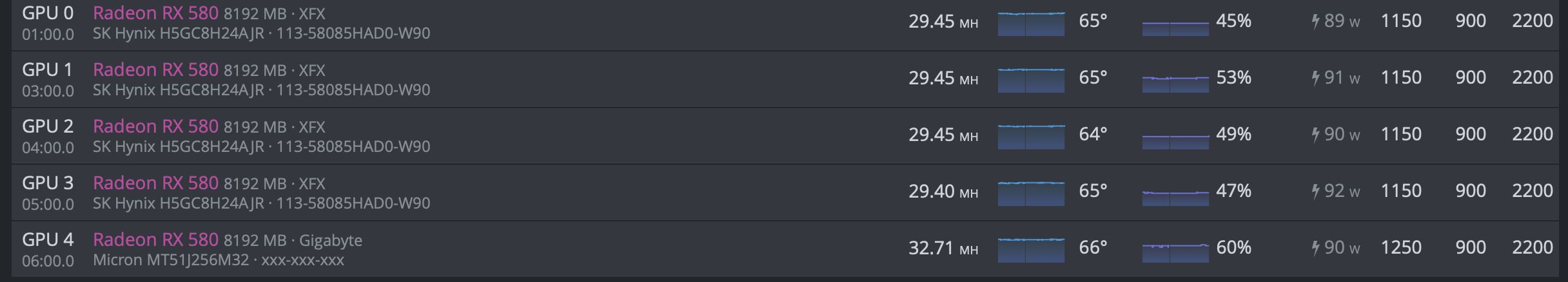 4db Hynix: 29,4MH - 1150 core, 900mV, 2200mem