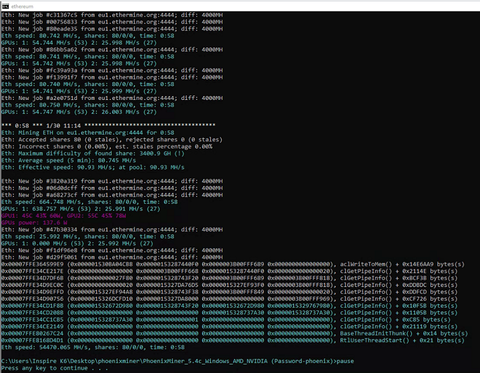 Sziasztok, valaki tudna segíteni hogy asus rx5700xt oc-val bányásznék ethereumot, phoenix minerrel, elkezdtem 120w-on 50-52mhs, 3 perc elteltével leviszi a 70w-ra, ez miért van?