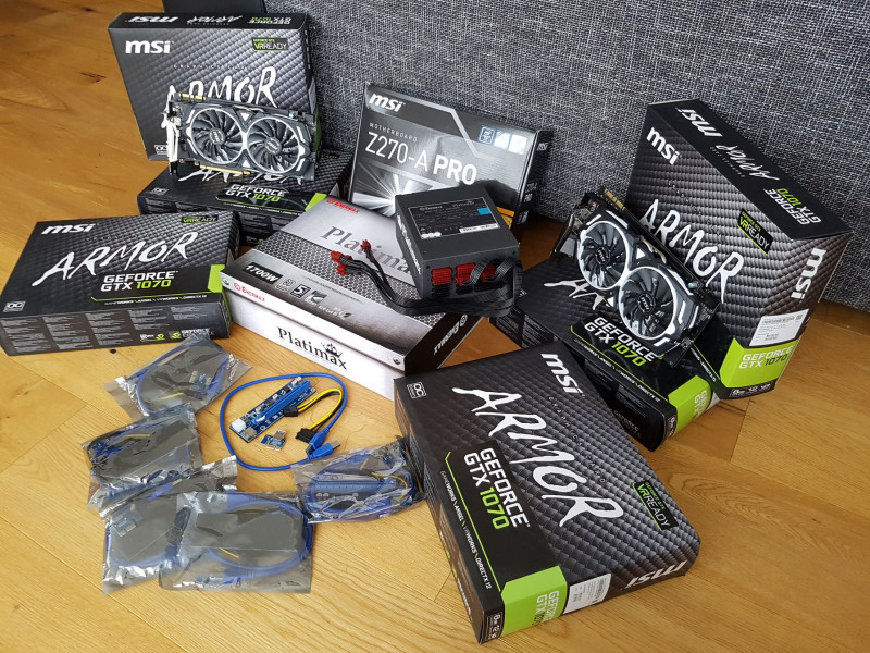 Amúgy megjött a 6 db GTX 1070, már csak az SSD-re várok és összeállt a cucc. Már a riget is összeraktuk fából.