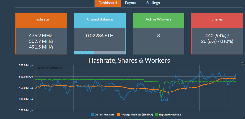 Sajnos mégis igaz a hír miszerint alacsonyabb a pool statban a hash, mint amit a miner mutat. Eddig mindig a reported meg actual hash értékeket láttam, mert ez a nyavalyás ethermine kivette az avarage értéket a dashboardból, és csak most néztem rá az átlagértékekre. Hiába volt 250 MHs a rig teljesítménye, ha átlagban csak 227-et tudott.