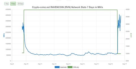 Eléggé "érdekes" a Raven diff és a hash alakulása, itt kézzel állítgatják a diff-t hogy ilyen egyenletes?.... vagy fenn vagy lent