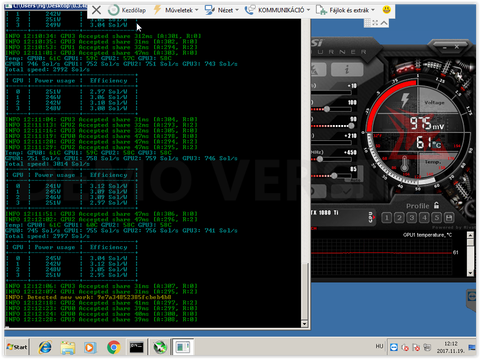 Itt fagy a miner, és 5 óránként eldobálja az egyik kártyát, wachdoggal nem probléma, hardveresen kuka 3 hónapon belül.A mért adatok 20-22 fokos teremben készültek, ez már a felfűtött üzemi hőmérséklet.