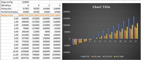 Telefonról gondolkozok emlékezeti számokból, de azt is figyelembe kell venni, hogy ha például a napi bevétel 14$, abból 12 profit, +10% teljesítmény az 1.4$, emellett mondjuk 20% többlet fogyasztás csak 0.4$ többlet költséget jelent. Tehát nem mindig a legjobb H/W a nyerő. De javitsatok ki ha tévedek.