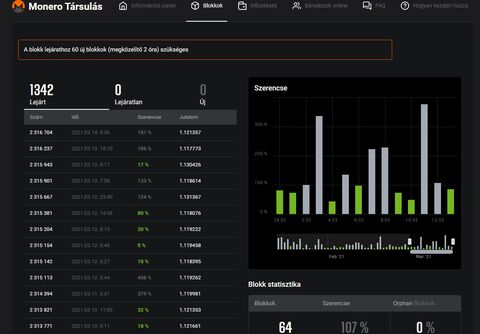 , ezért a pool által kikapart aktuális bokkból most éppen 0,01$ -nyi xmr-t kapnál (ez folyamatosan változhat az éppen aktuális aránynak megfelelően), ...mivel csak ekkora hash-el járulsz hozzá a "munkához". A pool nagyon ritkán talál blokkot (tegnap 3-at, ma még csak 1-et, ...és kicsi a poolhash a teljes monero nethash-hez képest, 2miners: 10,22 MH/s, míg a teljes monero nethash: 2,57 Gh/)) ezért a visszaigazolatlan egyenleg is lassan nő, az unpaid meg akkor nő ha a talált blokk confirmálva lesz (kb. 2 óra)
