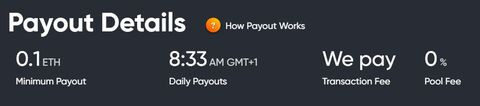 Itt nincs pool fee (általában 1%) és a kiutalásnak sincs tranzakciós díja (szintén valamennyi). Sok walletnél pedig ha 0.1 ETH-nél kevesebbet fogadsz, akkor szintén levonnak egy fix/százalékos díjat. Megéri ezeket is végiggondolni. -