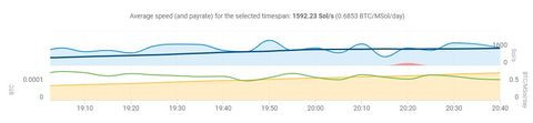 Momentán a pool sebessége ennél a coinnál 117Gh/s (nethash: 2,5Th/s) és kb 25 percenként várható a blokkok megtalálása. A reward meg kb 4 EUR/Gh/nap amit ír, de érdemesebb kevesebbel számolni és ez amúgyis folyamatosan változik ha még többen bányásszák és/vagy változik a coin árfolyama.