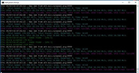 Most visszakötöttem a többi 5 kártyát is, nagyon nem stabil,és a Phoenix miner 5.2e-vel dolgozik (a többi verzió nem működött még ennyire sem). Sűrűn rá kell nézzek, mert az említett kártya hash értéke 0Mh / s lesz egy idő után, és a bányász progi lehal.