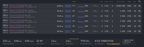 Van egy ASUS Prime H270-Plus (4G be van kapcsolva, az összes PCI-ra és GEN3-ra van állítva), 2db Asus, 2db Sapphire, 2db MSI RX480 8 Gb, Win 10, 60Gb a lapozófile mérete.