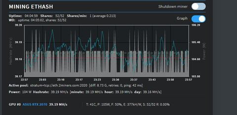 A komplet gép egyébként 150 160W fogyaszt bányászat közben. És 35-37 MHs a hasrate. -