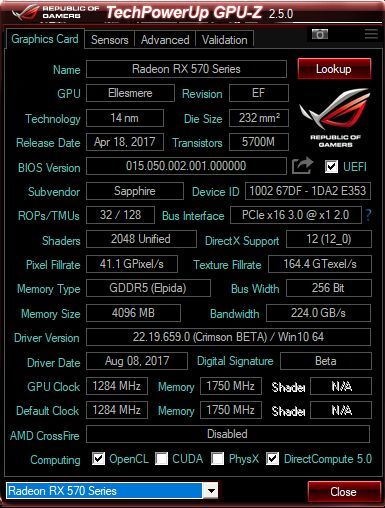 Sapphire Pulse rx 570 4GB 2 ventis elpida ram-mal.