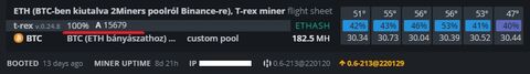 ).....ettől függetlenül (azon túlmenően, hogy jól hozott 4,5 évig) tényleg jó móka volt, de azért nem lett a hobbim és az eth merge miatt (meg el is avultak a kártyáim ennyi idő alatt és nem akartam újabb beruházást) tavaly nyáron kiszálltam, rig elad, árán kripto vétel....és nem igazán hiányzik, de annak idején tényleg érdekes volt.... -