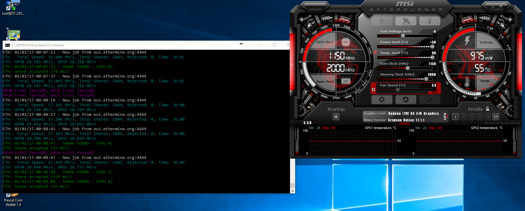 Rx470 4gb : 1150/1950-2000mhz 28.2-28.6 mhs