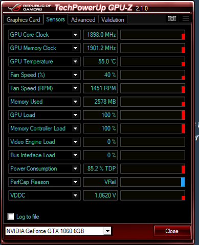 Amit kissé furcsállok, az a PerfCap Reason = VRel. Ez elvileg nem hibára utal, csak az okát mutatja, hogy miért nem boost órajelen megy a kártya?
