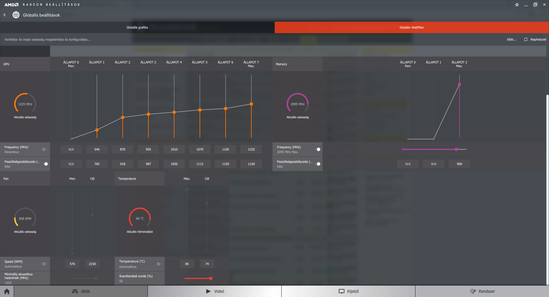 Az 570 megy szépen arra hat is most a wattman, de a többit lehetetlenség állitani azért mennek ennyit, az okot nem tudom, h miért csak az 570-re hat a setup és akkor még a claymore azt irja, h túl van húzva a kártya ... Szórakoztató. Soloban nem tudom mit tudhatnak az 580-ak. -