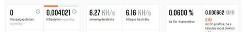 NA jó, mindjárt beröffentem a vasat.. megmutatom az mit nyom... (8kh/s-t el tudok érni) Az érdekes az hogy amikor 2-3 laptoppal nyomattam, összesen volt 3kh/s-em akkor is számolta szépen a "jussomat"