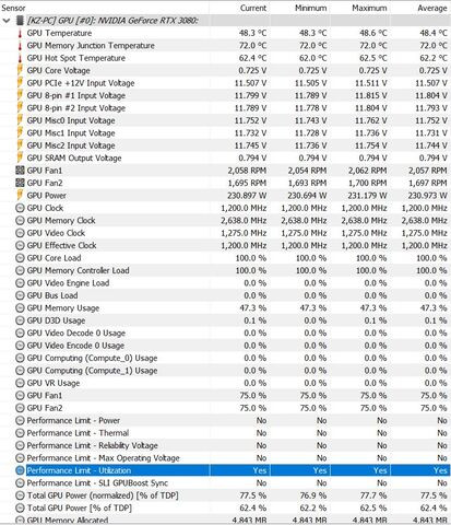 De mi van 100%-ig kihasználva? A GPU Core load és a GPU Memory Controller Load van 100%-on, de ez ugyanúgy 100%-on van a 3070 esetén is, és ott mégse utilization limit van.