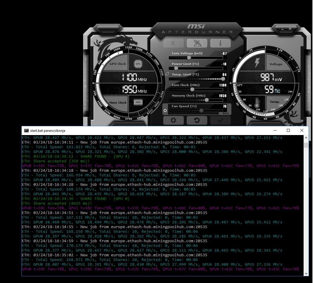 2000 fölött 3 db GPU birja, és hozza is a 29 föllötti mhs-t, viszont a másik 3 ilyen 19-eket meg néha 0-t..