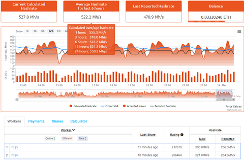 Ezzel szemben a Nanopool 522-t ír 6 órára, ami nekem sehogy nem jön ki. A rig5 reported értéke helyes, azonban a többi értékből semmi.