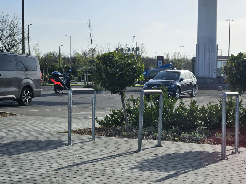 Az oszlop környéki 6 sor parkoló szalaggal elkerítve, lezárva.
