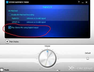 Hangkarim: Creative X-Fi Titanium Fatal1ty Champion Series PCI és az Optical Out-ra van dugva, látszik is a piros lézer jellegű fény a hangkari kimeneténél és a hangfalszettbe való optikai kábel végén is és ekkor is csak akkor fogad jelet és akkor jelzi a kijelző, hogy optikán össze van dugva, ha be van pipálva a következő: