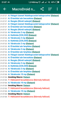 Redmi 5, android 7.1.2, macrodroid v4.1.0 pro.Csináltam egy makrót, ami megszűnő wifi jel esetén bekapcsolná a mobiladatot.