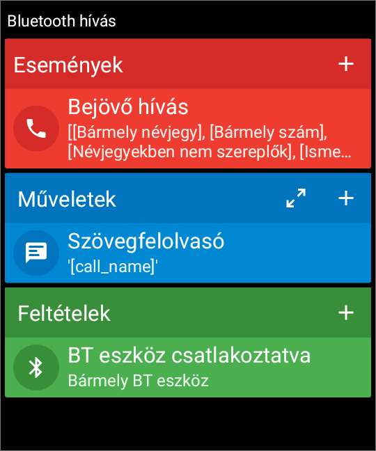 A naptáros makróval tomy86 fórumtársat kell megkeresned. A hívásfelvevős makrót én készítettem. A feltételeknél megadtam, hogy a parancs csak a készülék bizonyos helyzetében fusson le. Nálam általában fejjel lefelé vagy oldalt fekszik a telefon, ezért zsebben vag tokban nem tud lefutni a parancs. Tehát beállítottam azt a pozíciót, amit beszélgetéskor használok. Ha nálad fejjel felfelé van a zsebben a telefon, akkor a feltételeket máshogy kell konfigurálni, hogy ne vegye fel, amíg a zsebben van. -