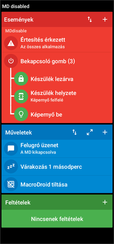 A MD fejlesztője egy korábbi verzióban beépítette a műveletek közé a "Macrodroid letiltása" nevű műveletet.