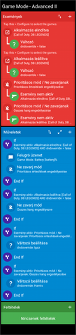 Ezután ugyanezt csináld meg a "Indítás Shure +Pay" művelettel is, de itt az "Esemény aktív" feltételnél az "Alkalmazás leállítva" eseményt válaszd ki.
