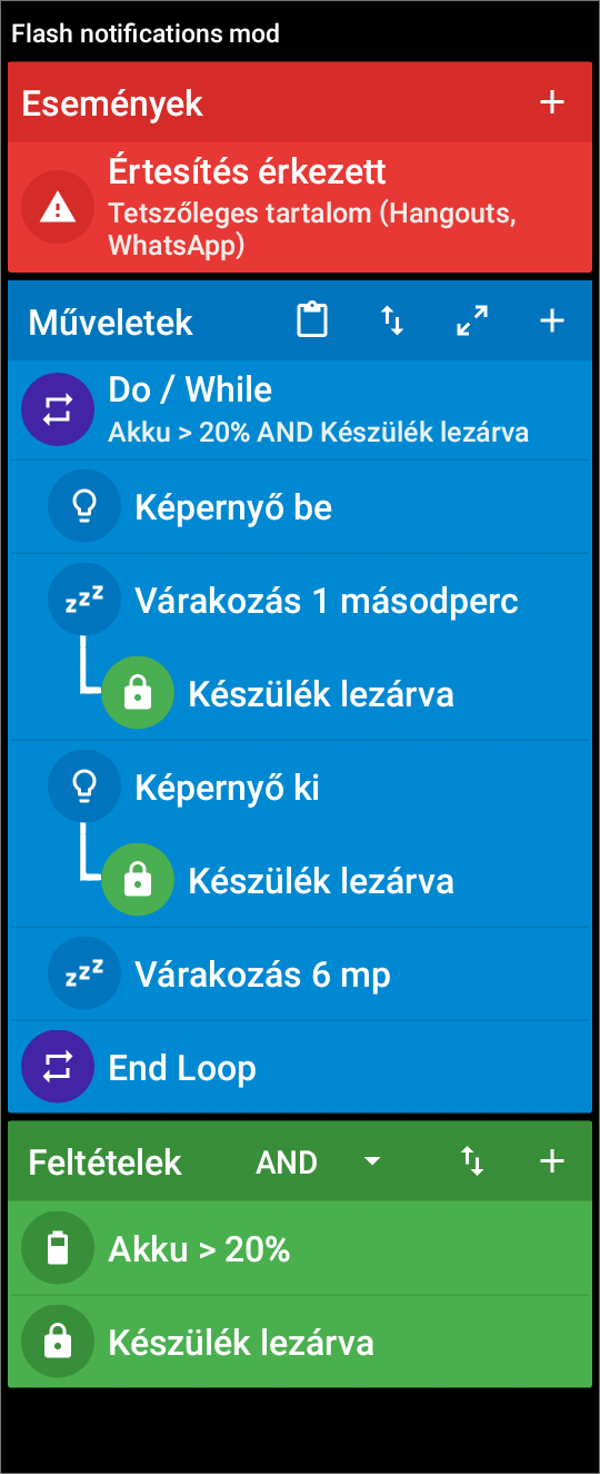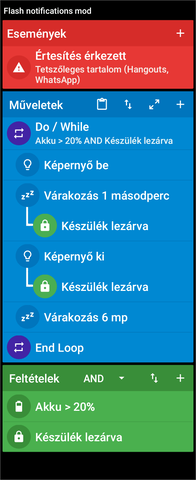 A 4x2mp-nek semmi értelme, mert a képernyő ki művelethez hozzá van rendelve egy képernyő lezárva feltétel. Ha feloldottad a kijelzőt, akkor nem fut le.