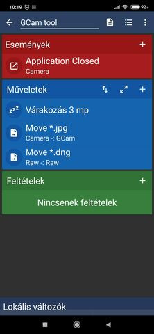 GCam tool (mozgatás funkciója) macrodroiddal. Külön mozgatja a jpeg-eket és külön a raw állományokat a gcam alkalmazás bezárása után 3 másodperccel. (Várakozás nélkül simán lehet, hogy még nem készül el az állomány, mire mozgatni akarná - tapasztalat. De lehet, hogy sok a 3 másodperc. Igazából jobb lenne egy könyvtár monitorozó esemény)