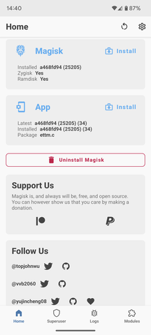 - a HuskyDG féle USNF* ami letölthető innen és amiben kicsit csavargatnak a dolgokon az eredetihez képest, kipróbálnak olyan dolgokat amin ötletel a közösség valamint a mod v2 az olyan készülékekre van kitalálva amik gyárilag alapból Android 13-al jöttek ki (kdrag0n még nem jött ki frissítéssel..).