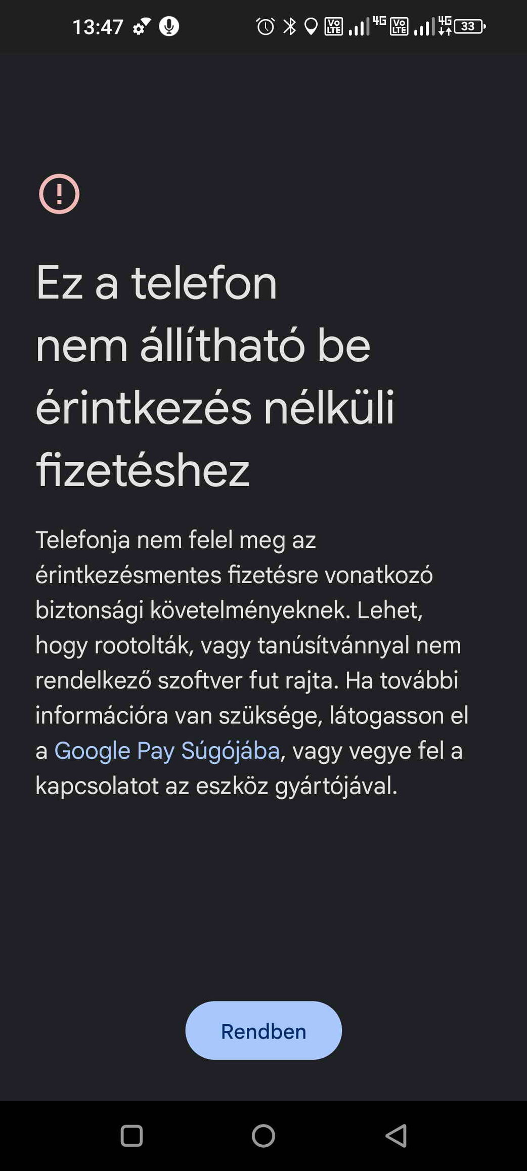 Ha a ROM-ba (Derpfest) -be jó a Play Integrity API Checker, márment a háromból a kettő, és ha teszel Magisk -t már nem jó.