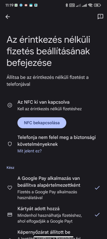 Jelenleg (ugy egy honapja) minden ilyen instabil.. A Google a hatterben mokol mar megint ezerrel, USNF is van 3..4 ami jar korbe mert kinek epp mivel jo.. de ki tudja meddig.. en sem bizom ra magam (bar en GWallet-GPay-t nem hasznalok). Jelenleg ez van... Android 8..9 ota, miota bejott hogy gyarilag a keszulekekben mar TEE-nek lennie kell azota kemenyit folyamatosan a Google a hatterrendszerrel, mivel a SafetyNet egesz egyszeruen megkerulheto volt igy kitalaltak hogy leallitjak (mar nincs is hasznalva, nem is ertem minek nezegetik meg az emberek) es csinaltak egy uj ellenorzo keretrendszert Play Integrity neven amiben mar a hardver is hasznalva van az integritasellenorzesre. Az egesz USNF meg az egesz modszer a tulelesre arra alapul, hogy minel "hihetobben" behazudja a rendszered a Google integritasellenorzonenek hogy igenis egy regi, nem TEE kepes keszuleked van de minden mas meg a rendes keszulek adatokat kapja vissza ha kerdezi.