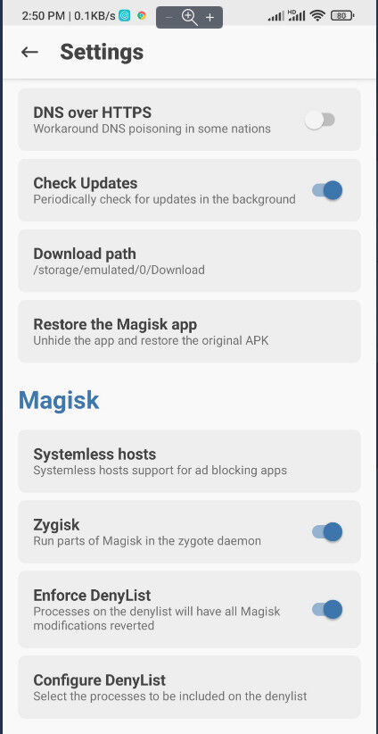 Magisk app elrejtés (hatástalan)